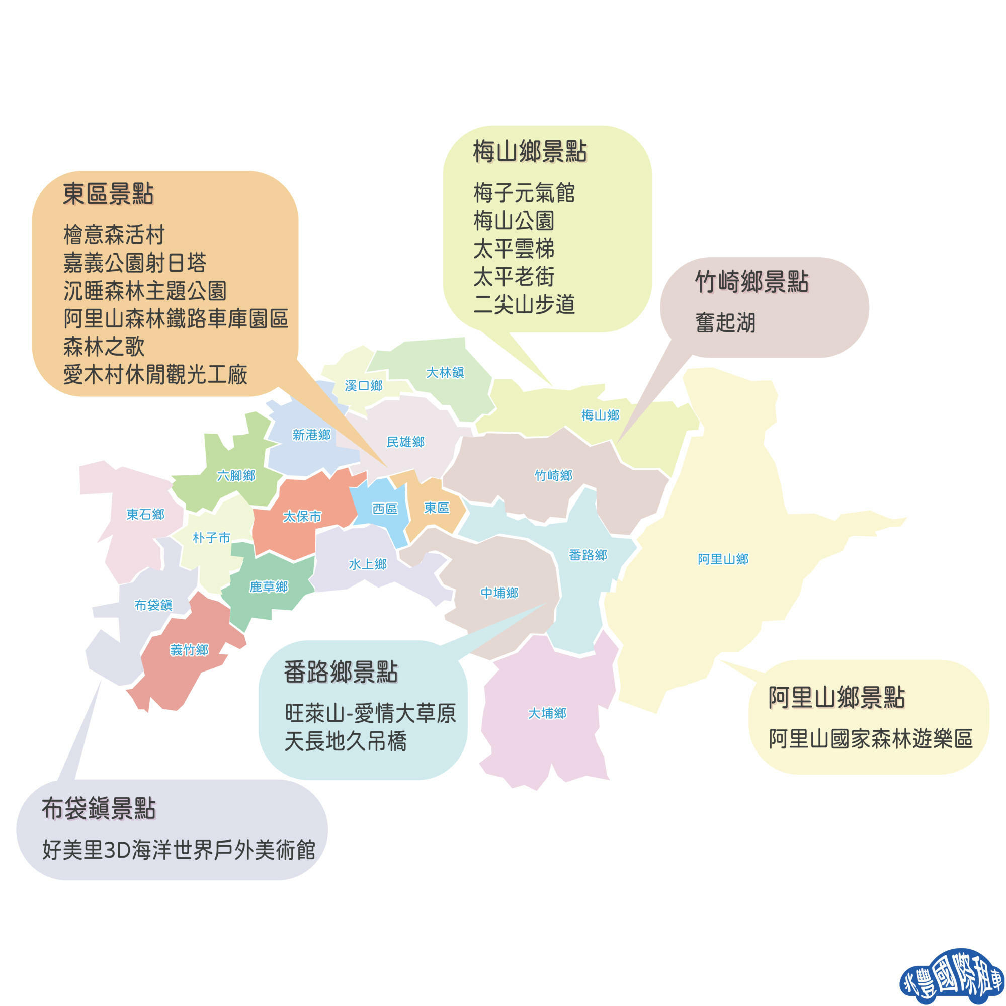 【嘉義旅遊行程】|東區|梅山鄉|竹崎鄉|布袋鎮|番路鄉|阿里山鄉