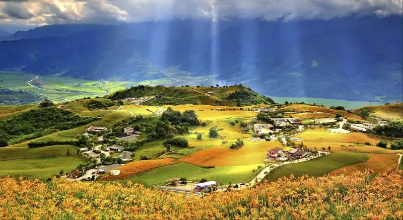六十石山就是處於花東縱谷的花蓮縣富里鄉竹田村東側,屬於海岸山脈的山系。每年7、8月是金針花的盛產期,來到六十石山,彷彿置身在一片金黃色的花海之中,雲煙飄渺,不禁讓人詠嘆大地之美。